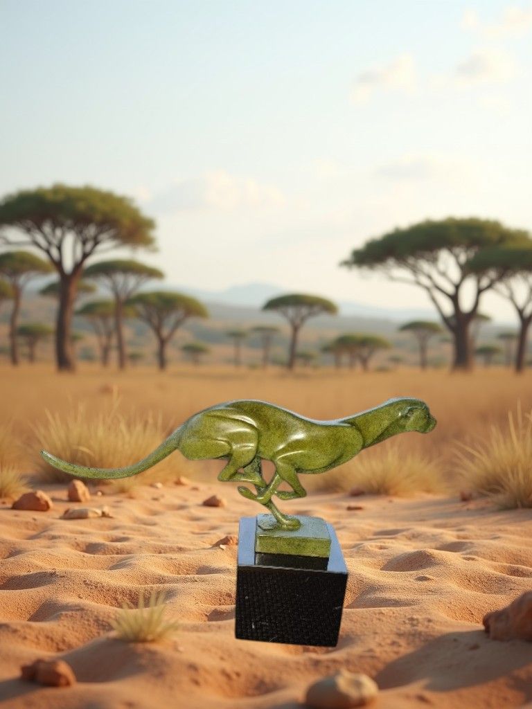 Bronze sur marbre d'un Guépard patine verte: Hauteur: 20 cm x Longueur:32 cm x largeur: 7 cm et poids: 2KG et signé: Milo