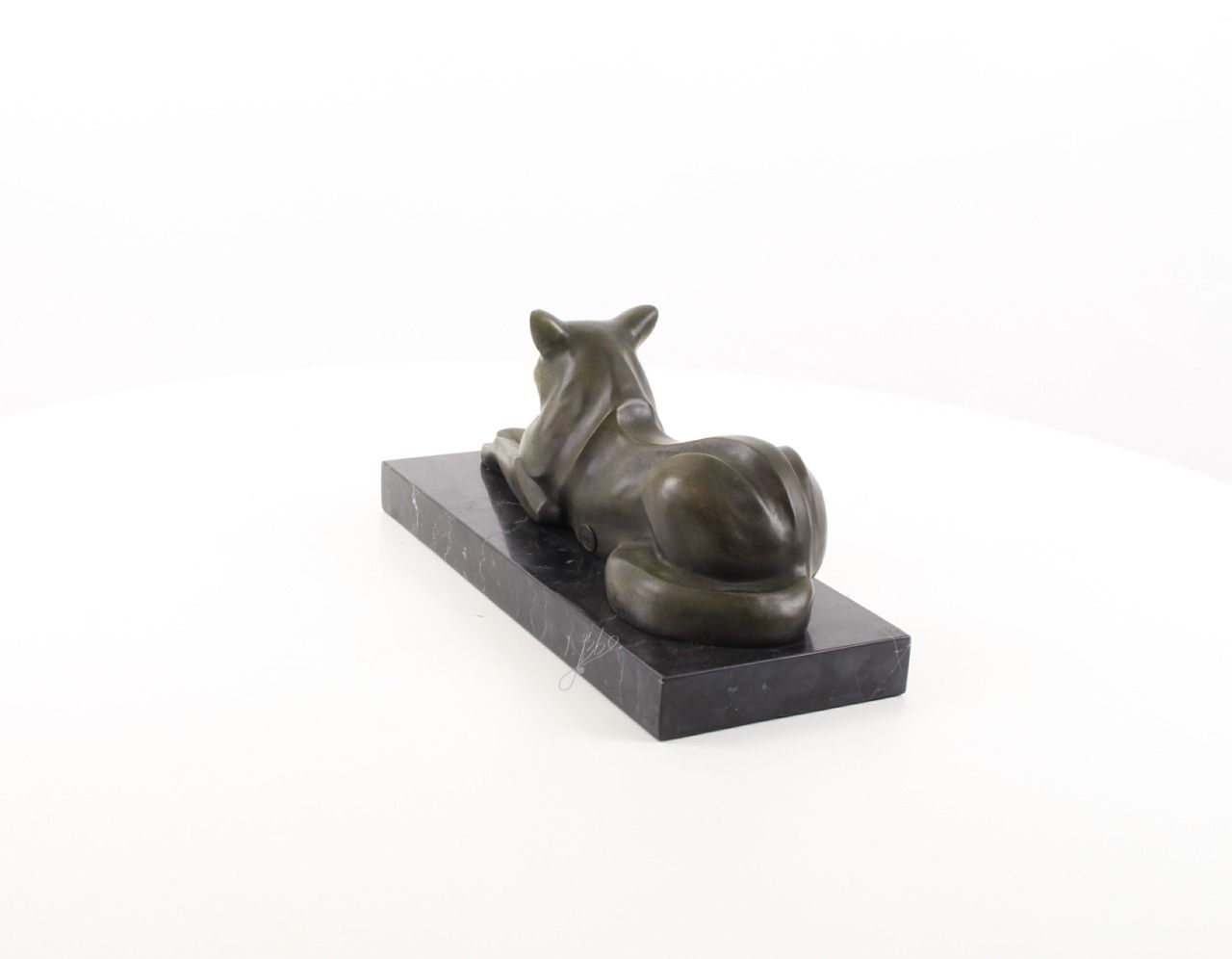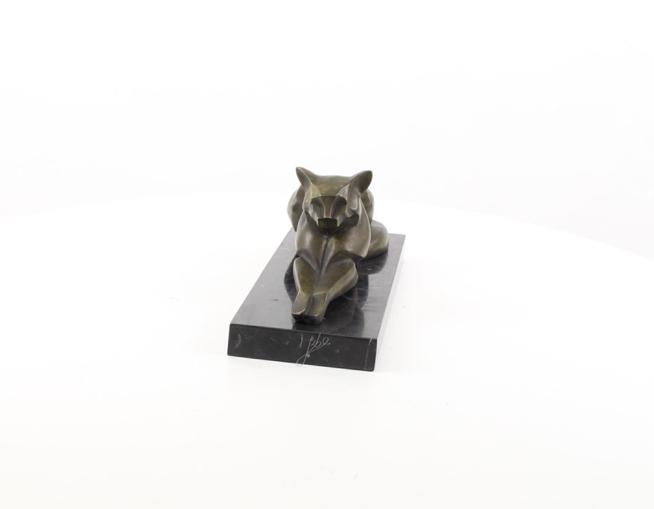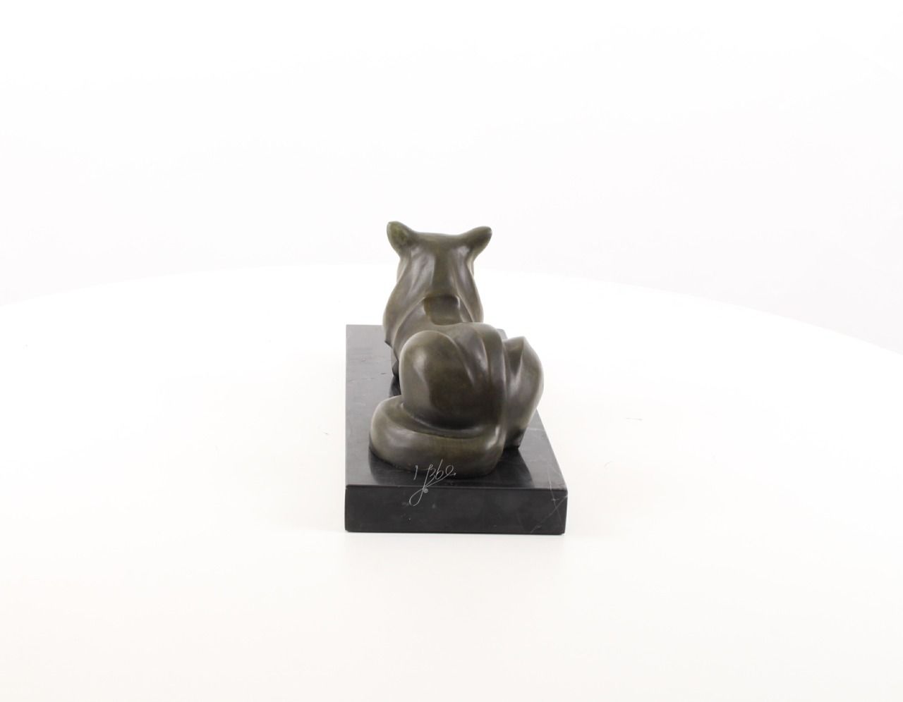 Chaque détail de ce bronze est minutieusement travaillé, des courbes élégantes de son corps aux textures délicates de son pelage. Le choix du marbre comme support apporte une touche d'élégance supplémentaire, créant un contraste saisissant entre la robustesse du bronze et la finesse du marbre.