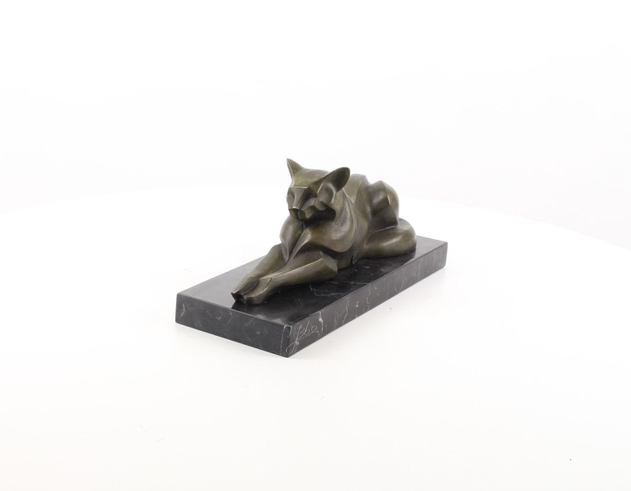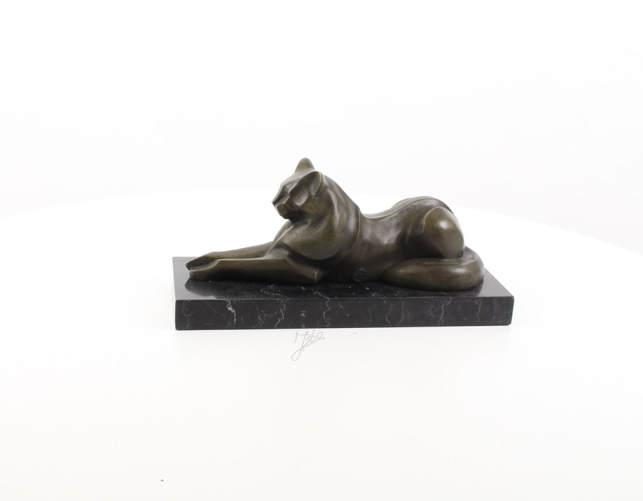 BA25. Bronze sur marbre d'un chat couché: Hauteur : 13 cm x Longueur: 25 cm x 12 cm et poids: 3Kg500 et signé: DE COUX