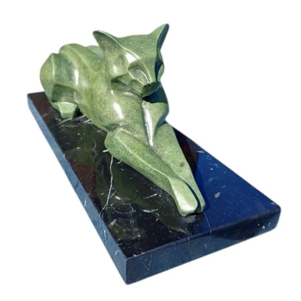 BA36. Bronze sur marbre d'un Chat avec une patine verte.