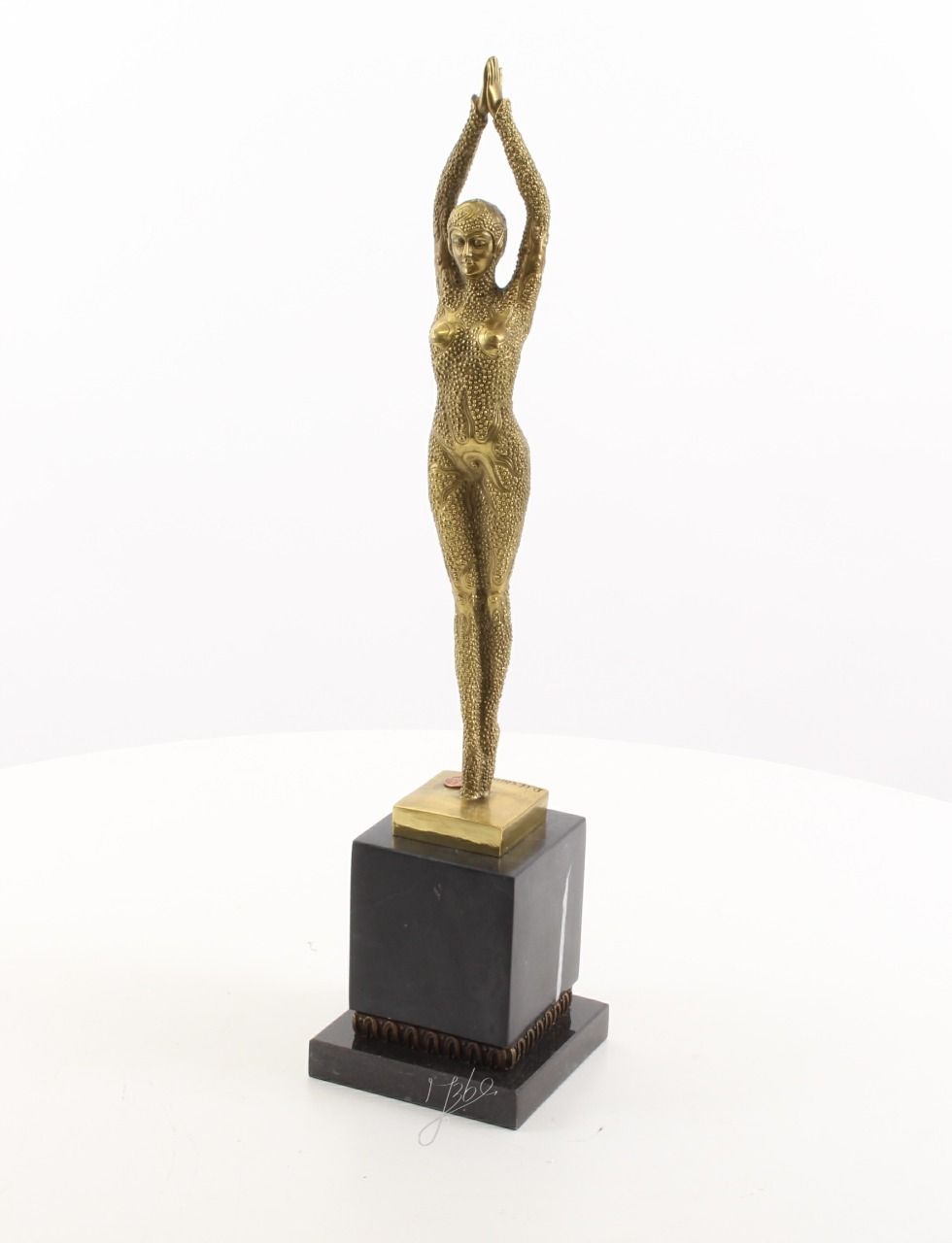 BAD11. Bronze doré sur marbre danseuse art-déco.Hauteur : 45 cm x Largeur : 10 cm x Longueur: 10 cm et poids : 3Kg500 et signé : DH.CHIPARUS