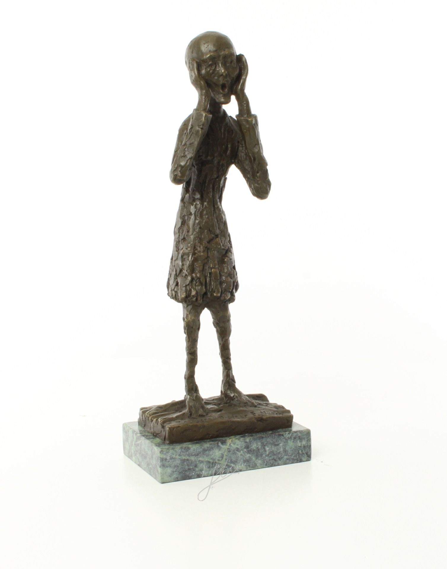 Vds exceptionnel bronze sur marbre intitulé le Cri d'après E.MUNCH. hauteur : 38 cm x largeur: 10 cm x Poids : 3 Kg200 et Dimension socle : 15 x 10 cm : signé : The scream after E.MUNCH .N°5282