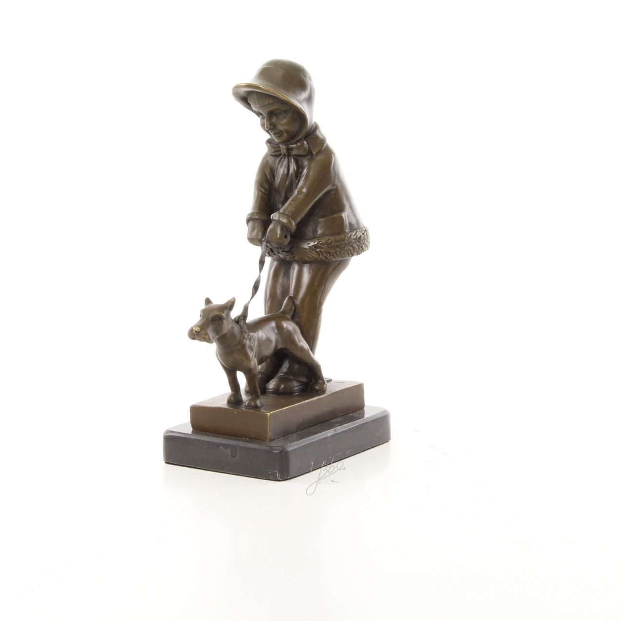 Bronze sur marbre fille et son chien: Hauteur: 22 cm x Longueur: 17 cm x Largeur: 8 cm et poids: 1Kg600 et signé: Alex Kéléty