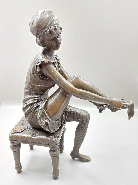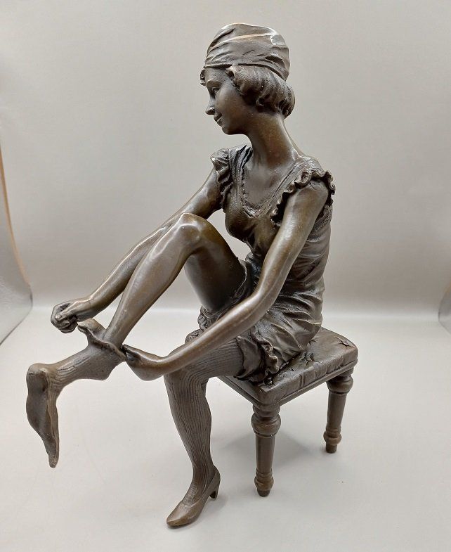 Femme qui enfile ses bas: Hauteur:23 cm x Largeur : 10 cm x Longueur : 18 cm et poids : 1Kg800 et signé: A.GORJ