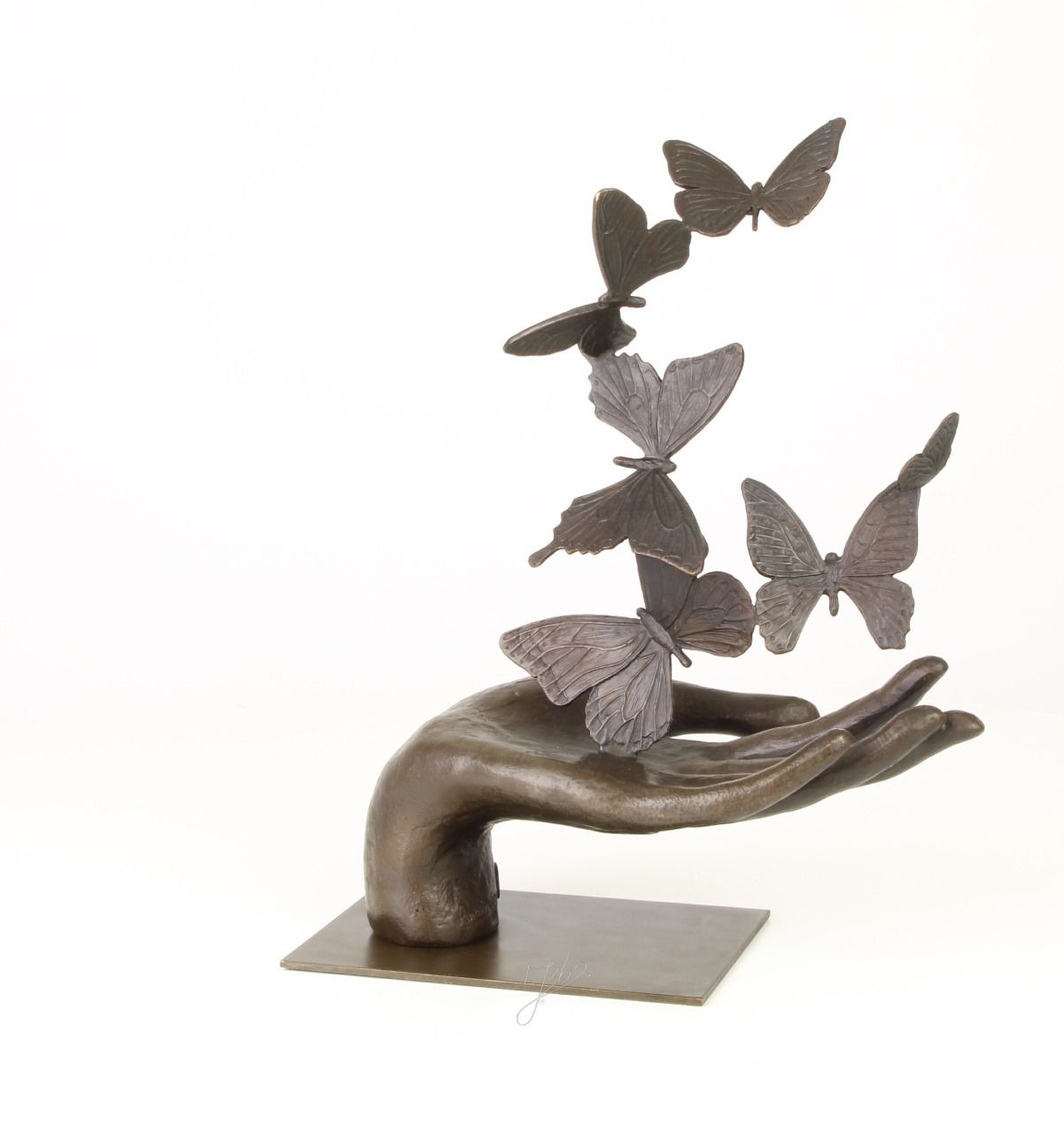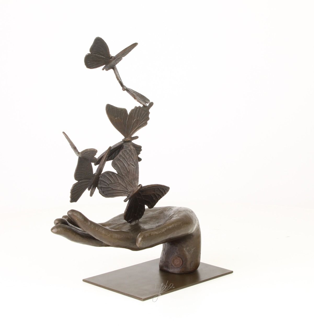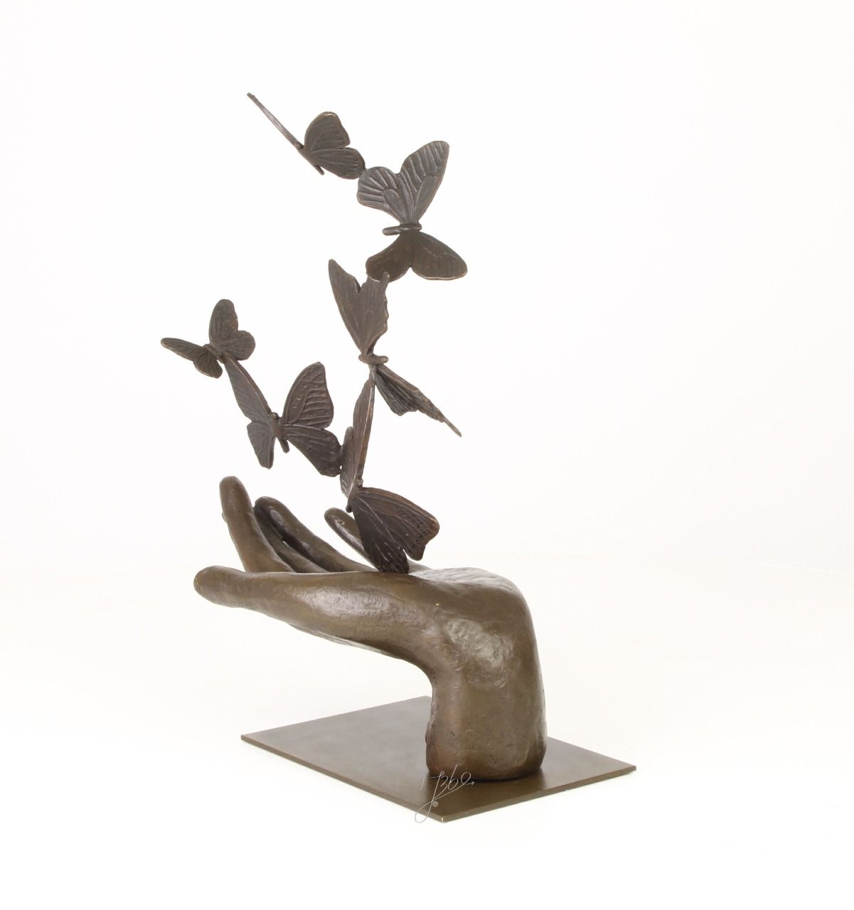 BD37.Exceptionnel bronze d'une main et des papillons. Hauteur : 37 cm x Longueur : 26 cm x Largeur: 15 cm et poids: 2Kg900