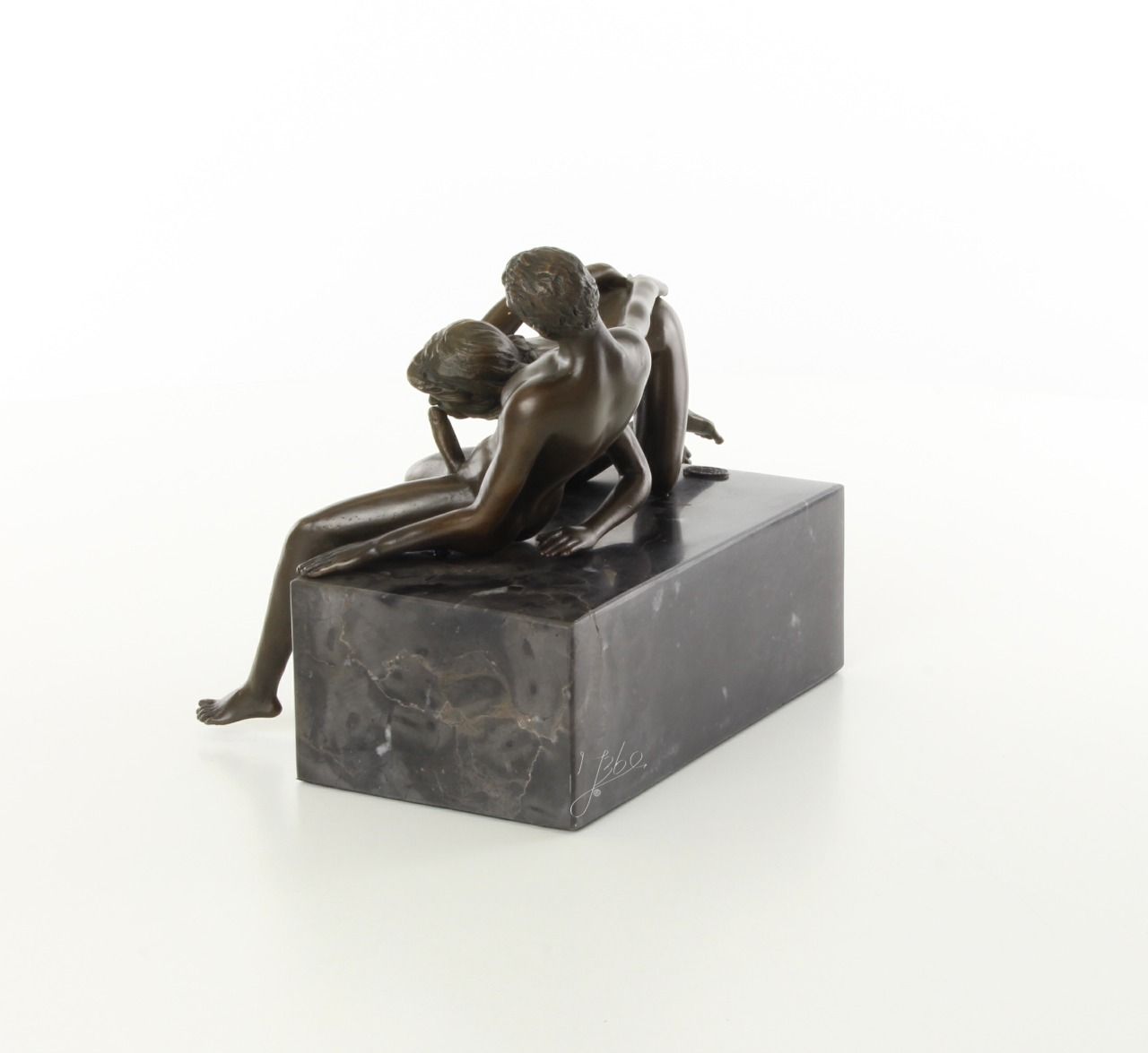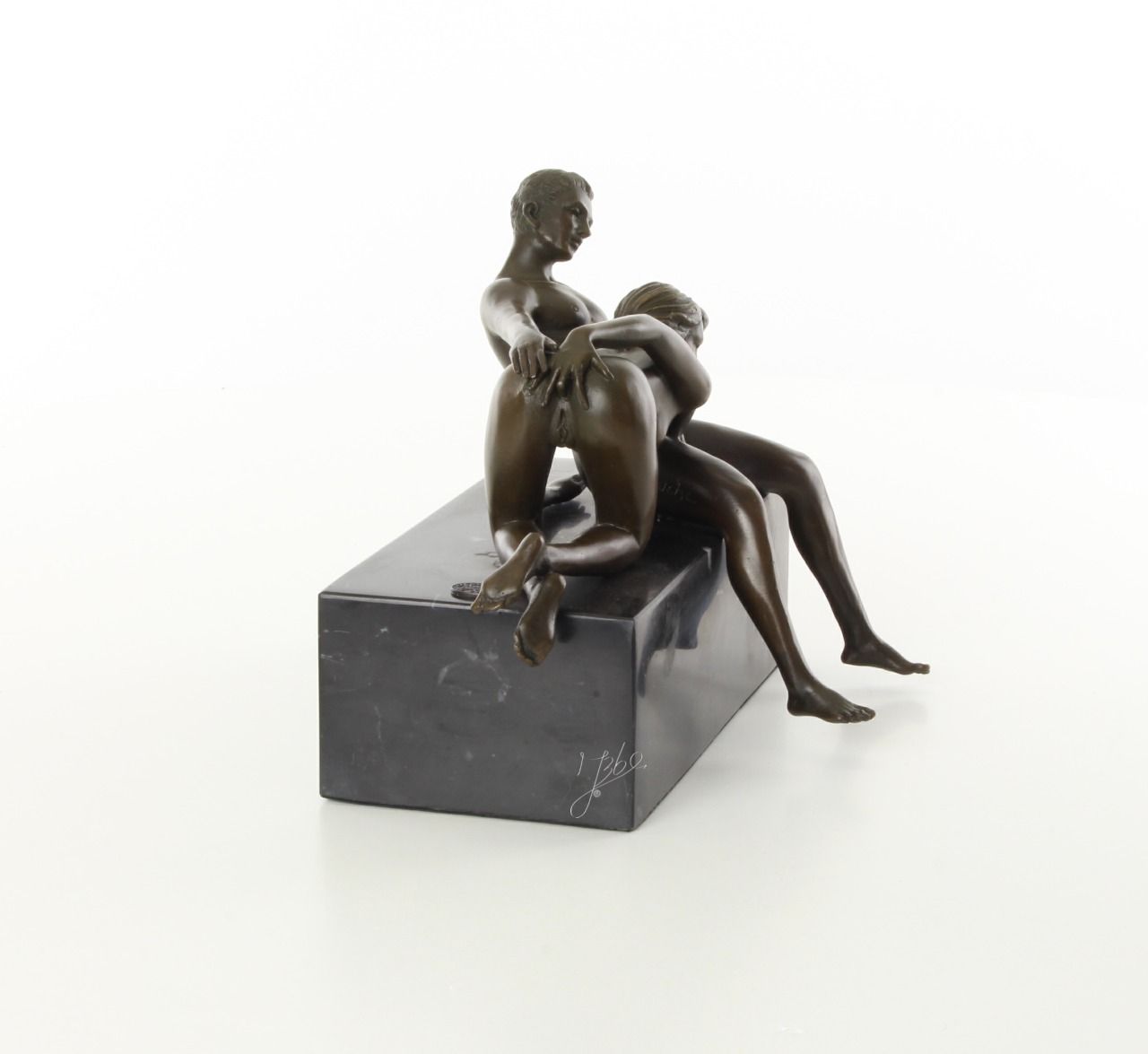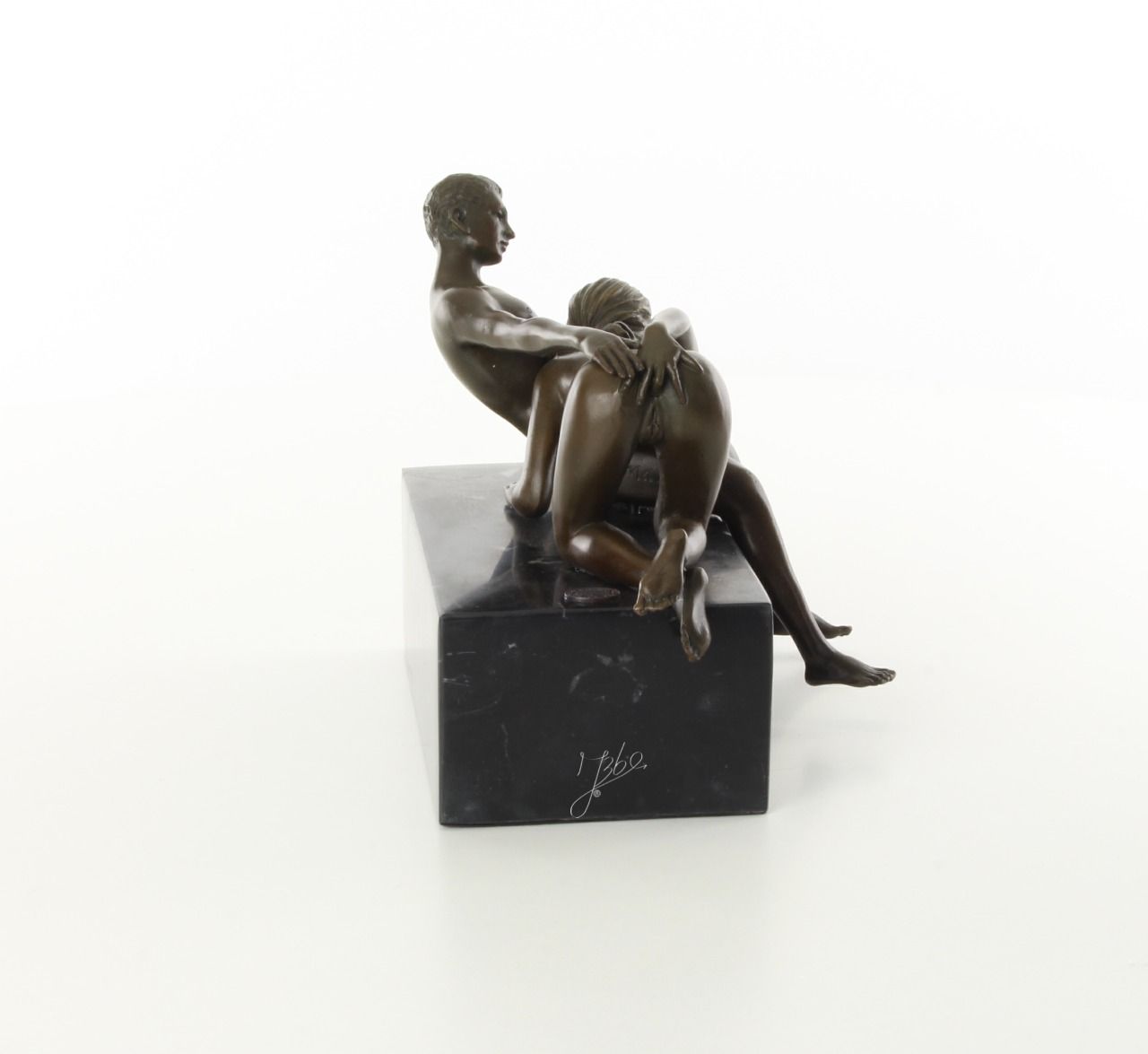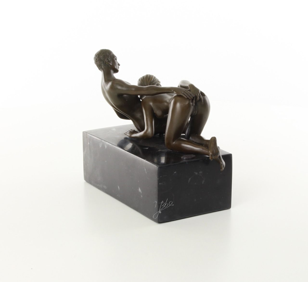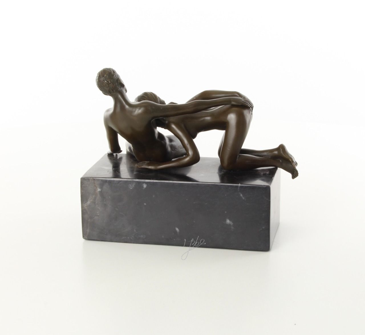 Beau bronze sur marbre d'une femme faisant une fellation : Hauteur: 16 cm x Longueur: 21 cm x Largeur: 14 cm