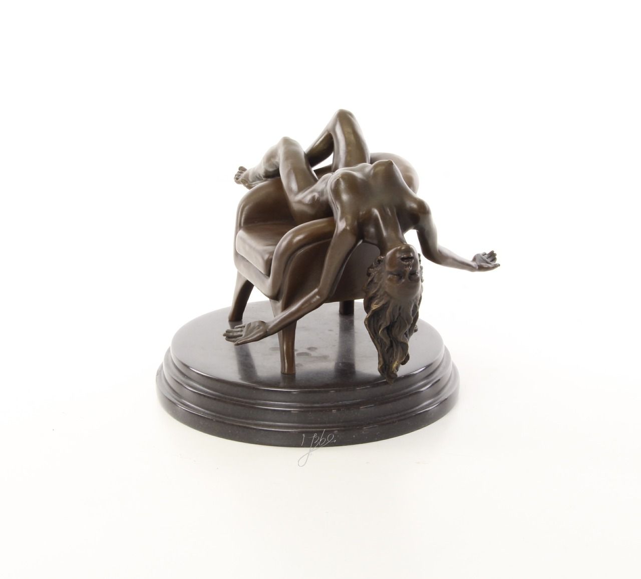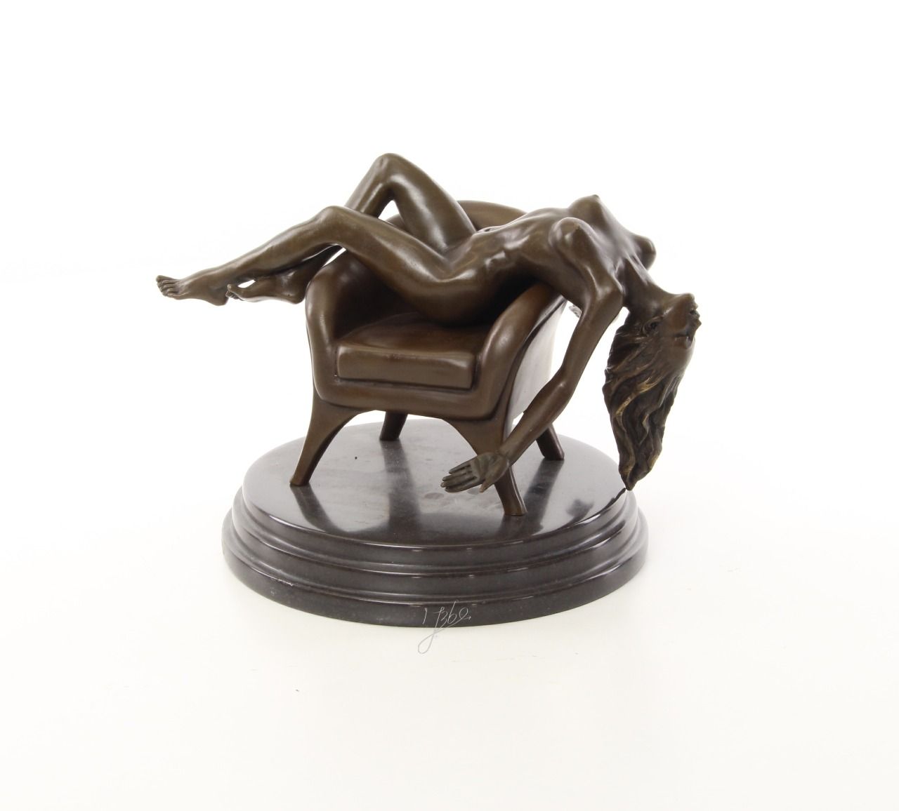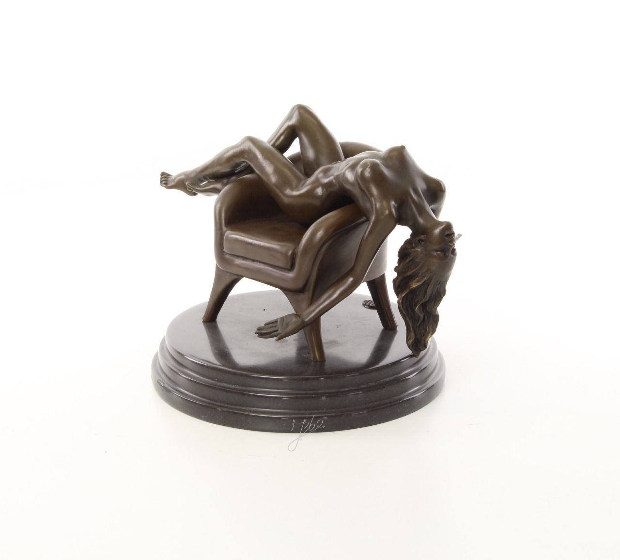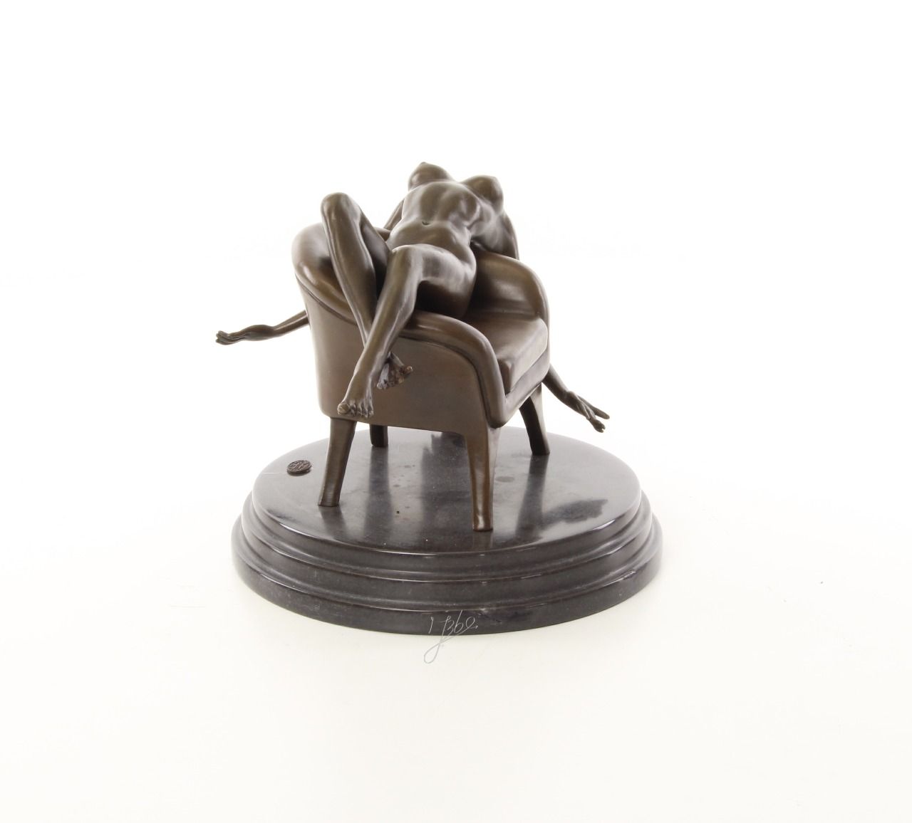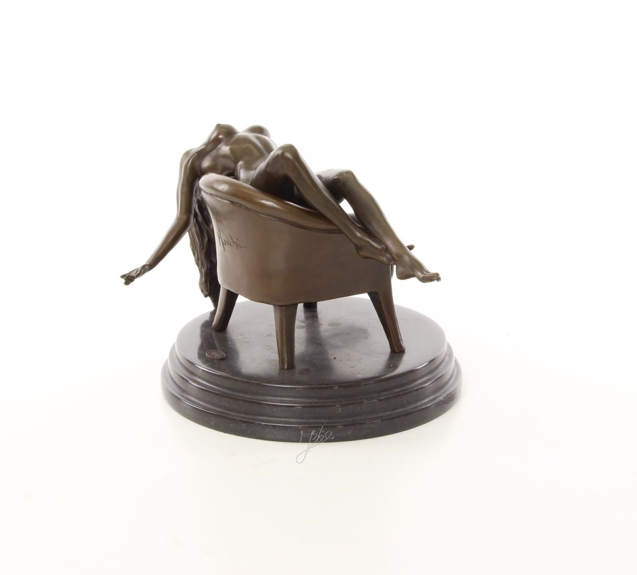 BE22.Bronze sur marbre d'une Femme nue sur un fauteuil. Hauteur: 18 cm x Largeur: 19 cm x Longueur : 23 cm et poids :4Kg et signé: Mauchi