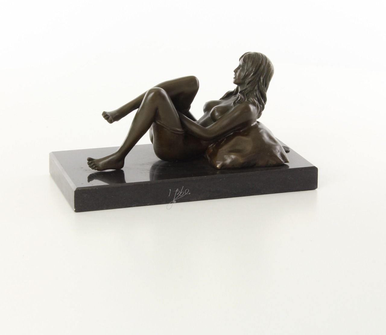 BE29. Bronze sur marbre femme qui enlève sa culotte. Hauteur: 12 cm x longueur: 21 cm x largeur: 11 cm et poids: 2Kg400
