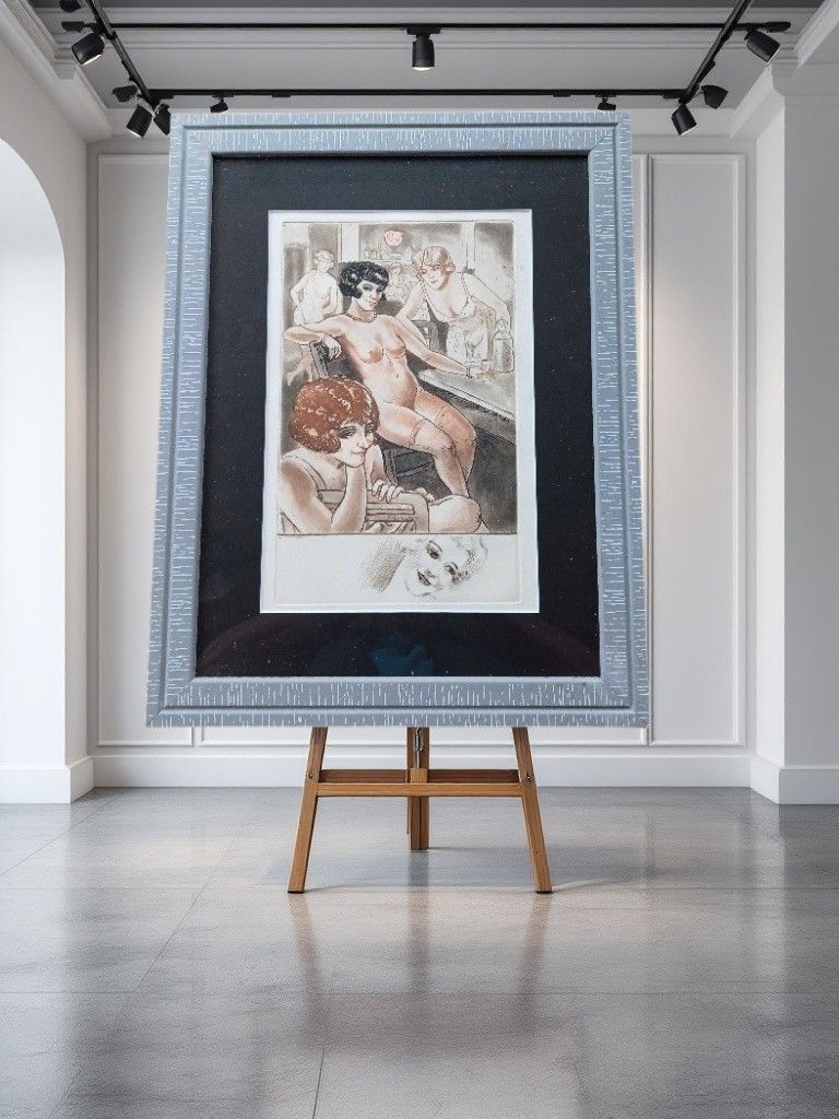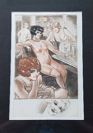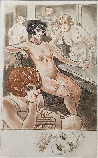 TAE08. Intérieur de maison close par COURBOULEIX. Gravure en couleurs de Courbouleix Léon, signé dans la planche.