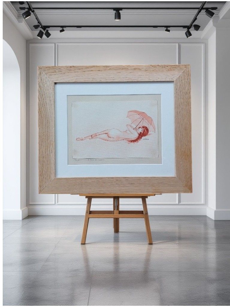 TAE14. Le bain de soleil. Aquarelle :Dimension:37x31 avec cadre et visu : 22x13 cm et signé: Lechamp